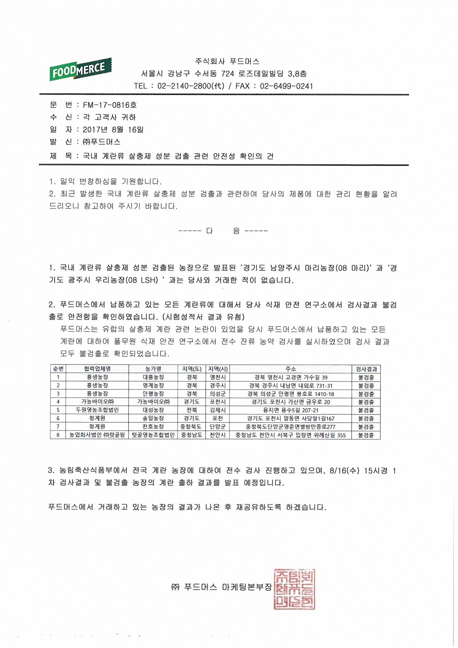 해오름의집에서 사용되는 계란류 안정성 확인 건
