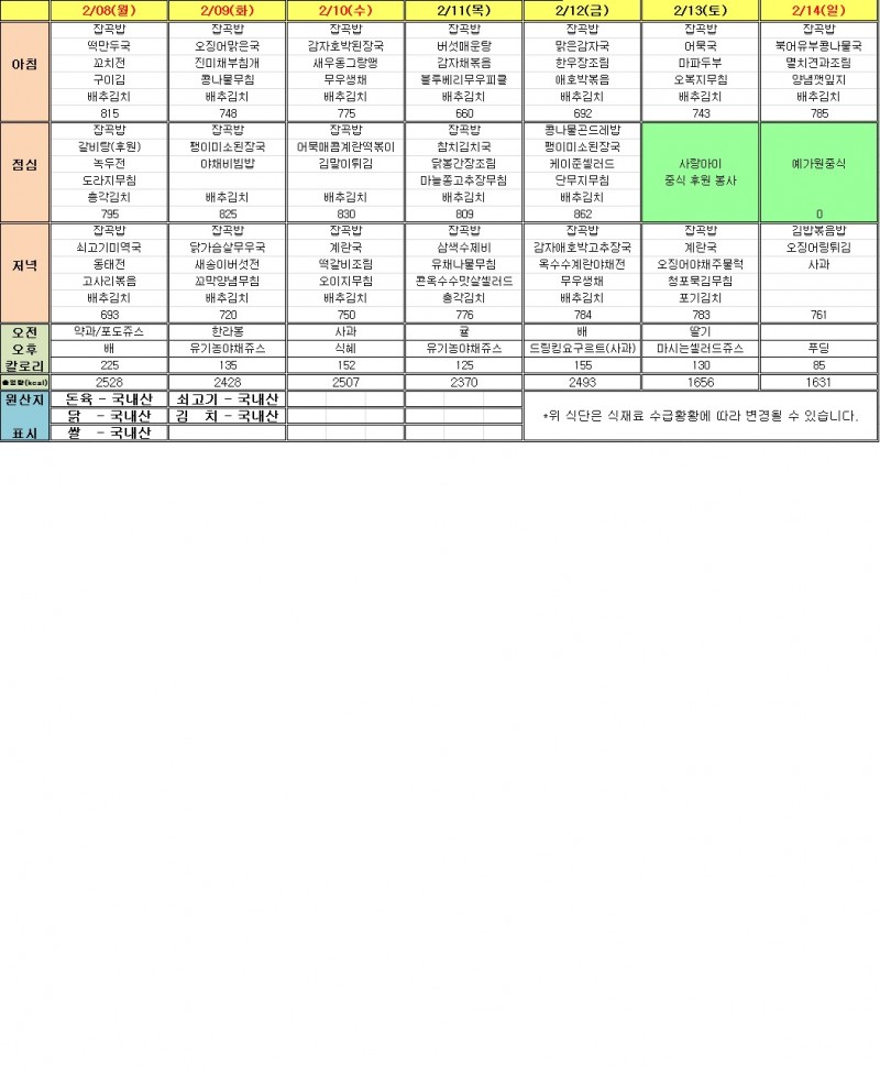 2월 1주 식단표