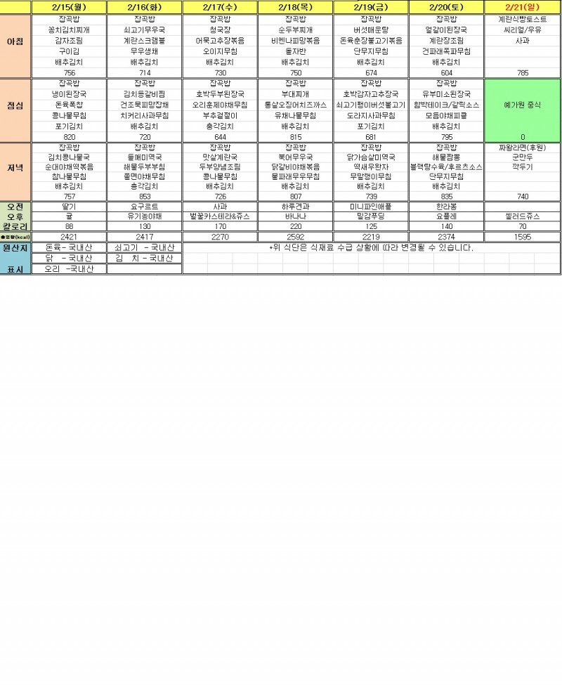 2월3주 식단표