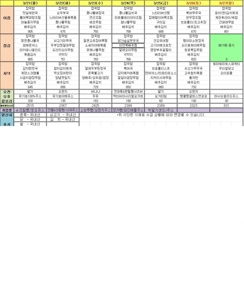 3월 3주 식단표