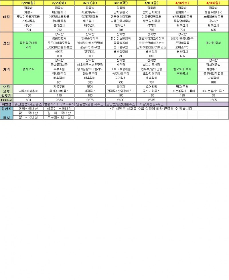 4월 1주 식단표