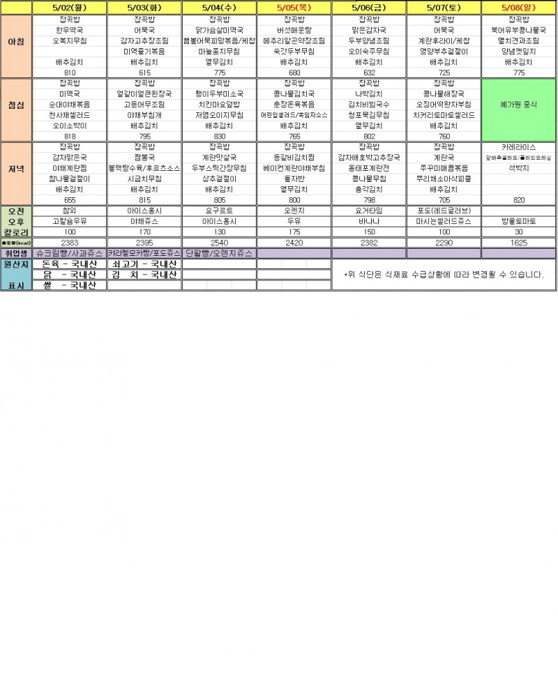 5월1주 식단표