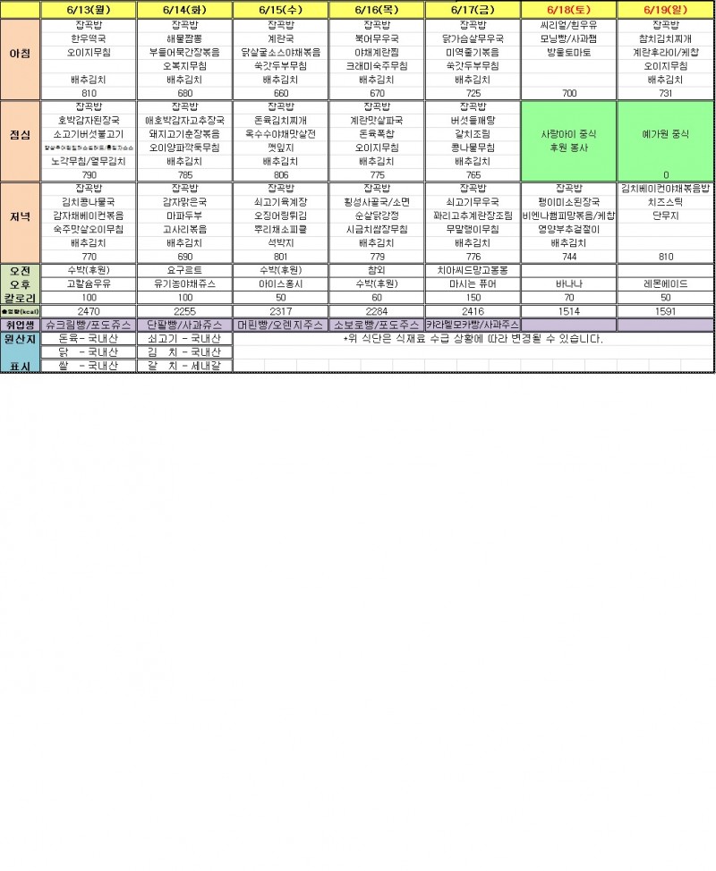 6월 2주 식단표