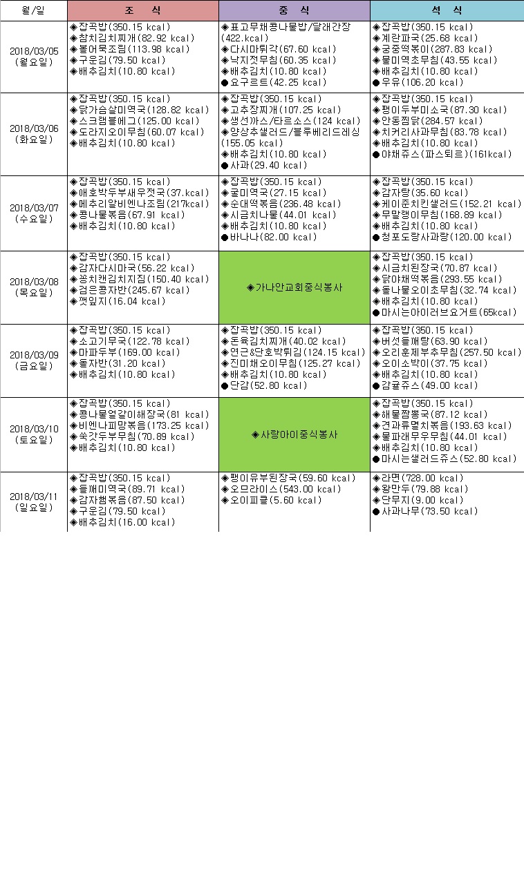 2018년 3월 1주 식단표